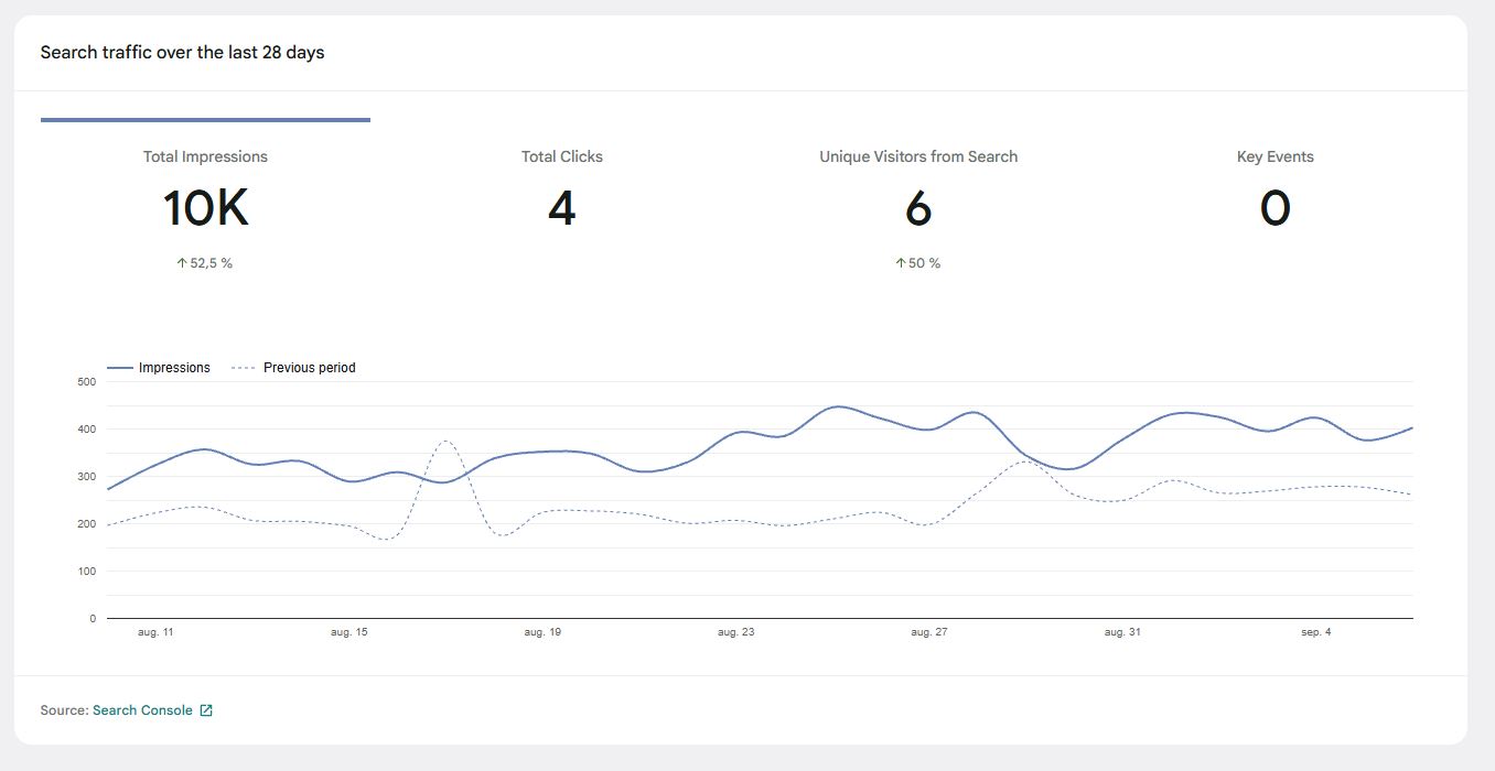 Det er 52 % mere end i juli. Men… kun 4 kliks. Samme som i juli.