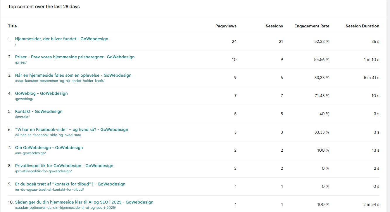 - Mest engagerende side: “Når en hjemmeside føles som en oplevelse” (83 % engagement)